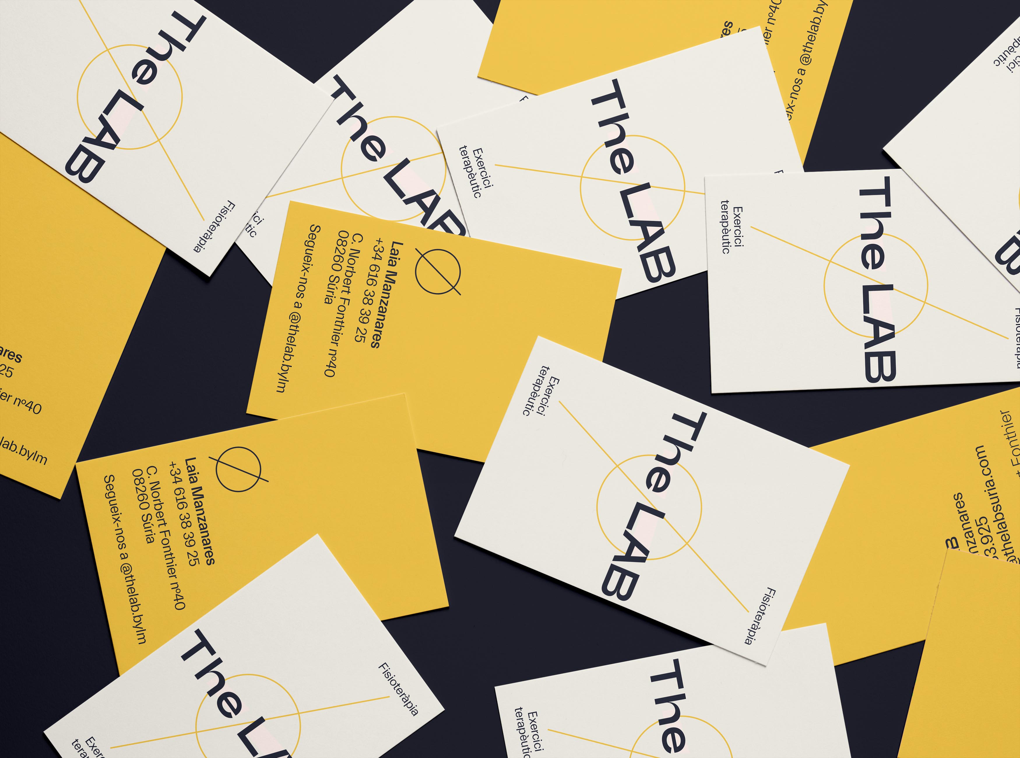 The LAB és un centre d’exercici terapèutic i de fisioteràpia. La identitat que se li ha donat és moderna i amb un to científic. S’ha acompanyat la imatge amb diverses il·lustracions que s’han aplicat també a l’espai.